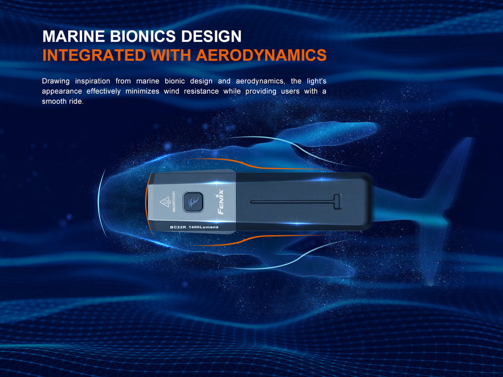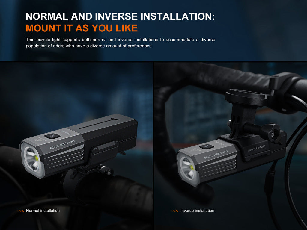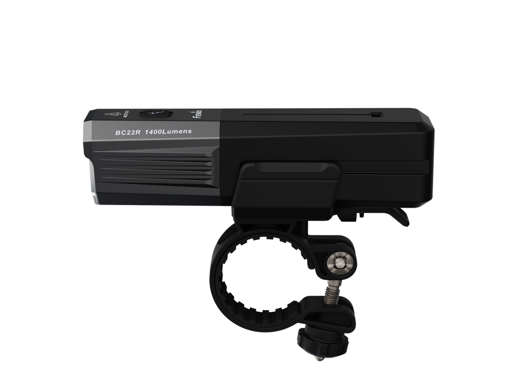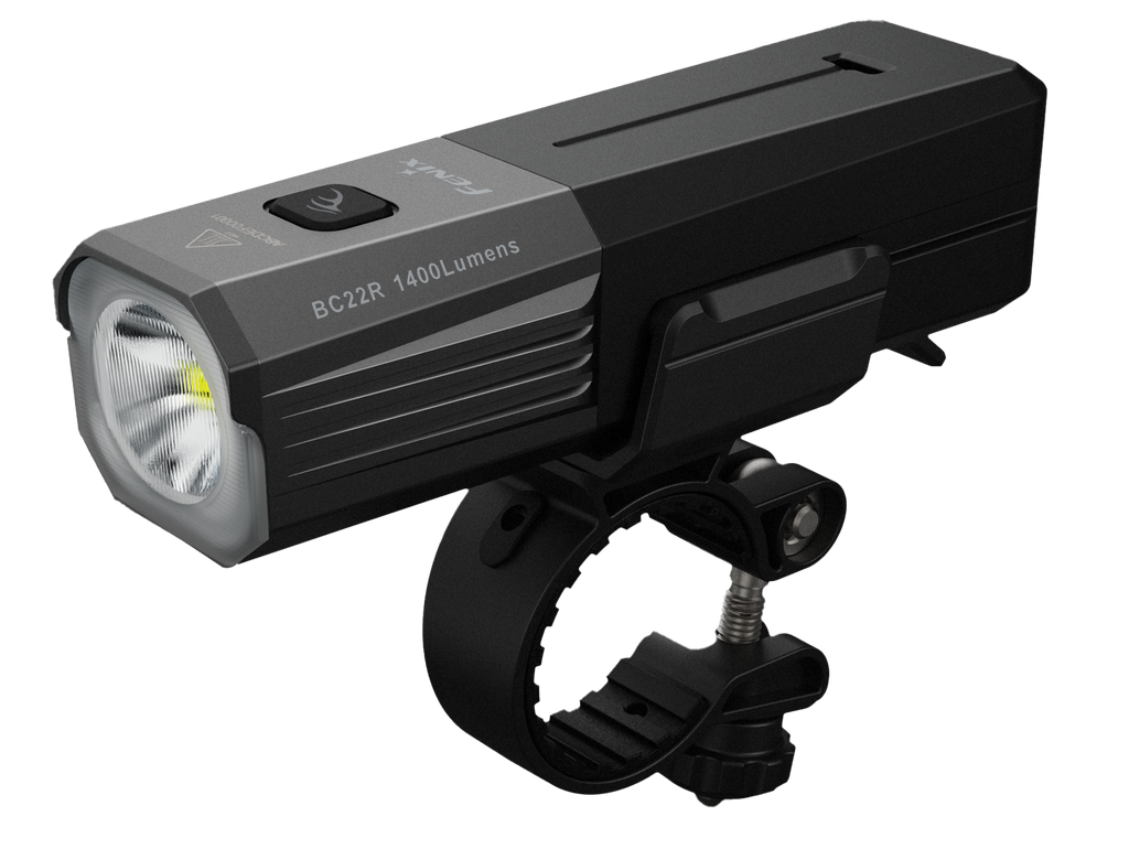 The Fenix BC22R High-Performance Road Bike Light delivers a powerful 1400-lumen output with a broad 512-foot flood beam, ensuring clear visibility while its anti-glare cut-off line protects pedestrians and oncoming traffic for your safety and theirs. Compact and aerodynamically designed, it mounts easily on the top or bottom of handlebars with a quick-release system for effortless use.