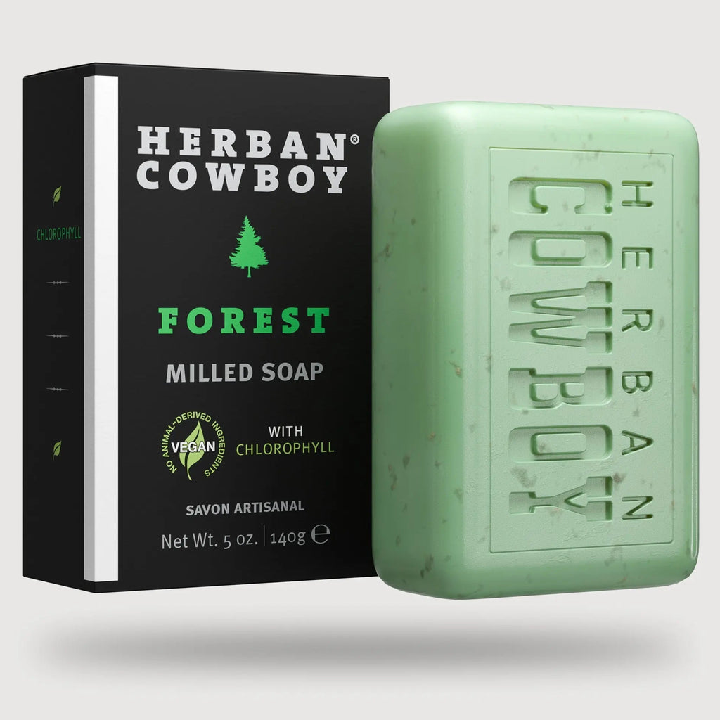 Our Forest Bar Soap is triple-milled for a solid, long-lasting clean. Boosted with chlorophyll to refresh and restore, it hits the skin with the sharp, woodsy notes of cedarwood, cedar leaf, and black pepper. Invigorating, earthy, and built for men. Pairs perfectly with Forest Dry Spray, Stick Deodorant, Body Wash, and Cologne — for a clean that stays sharp from start to finish. Bring the Woods home.