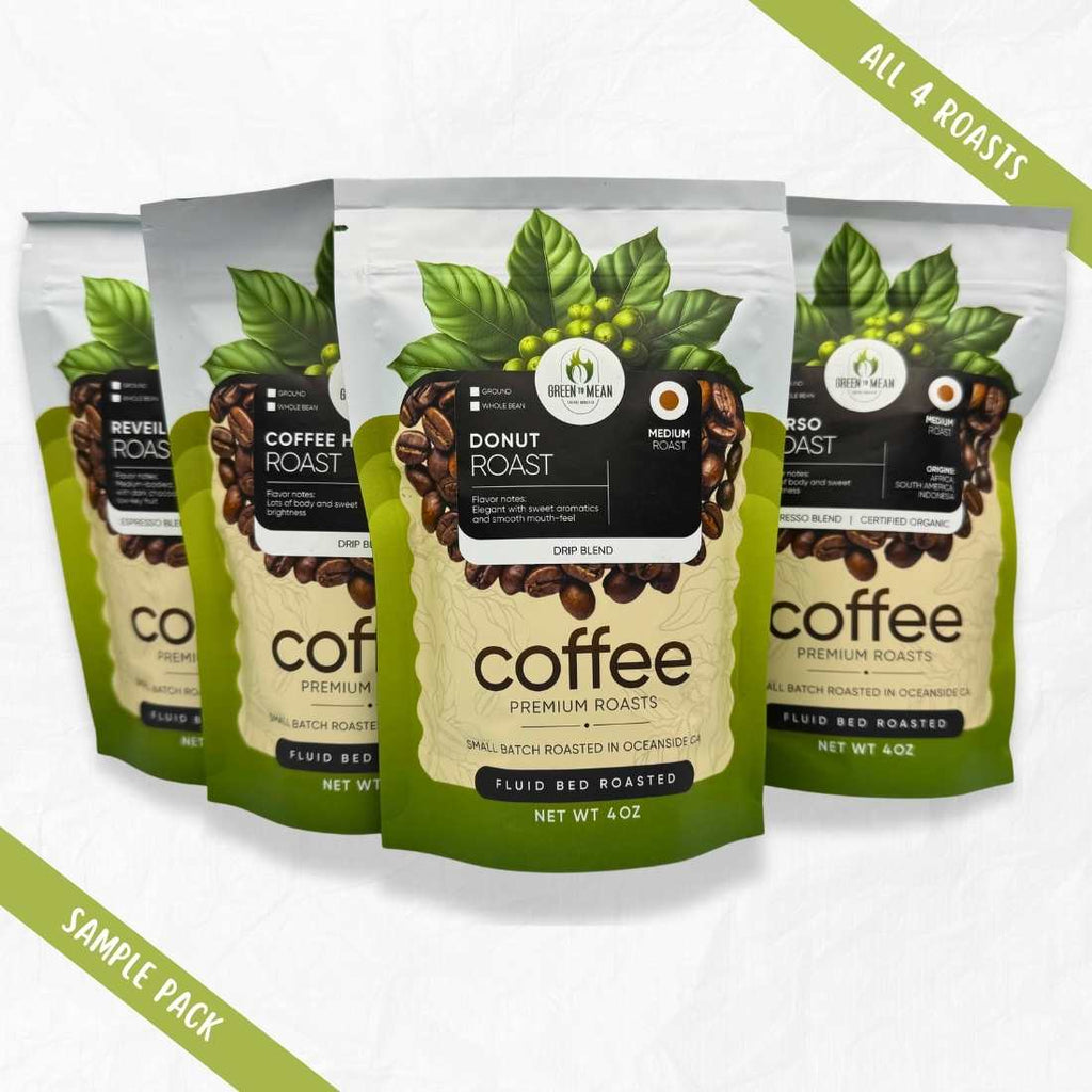 Top off your morning with the same level of quality you expect from your grooming routine. The Green to Mean Coffee Sampler Pack brings you four of most popular small-batch roasts together in one easy, gift-ready set—freshly roasted in the USA. Four Signature Roasts. One Perfect Introduction.