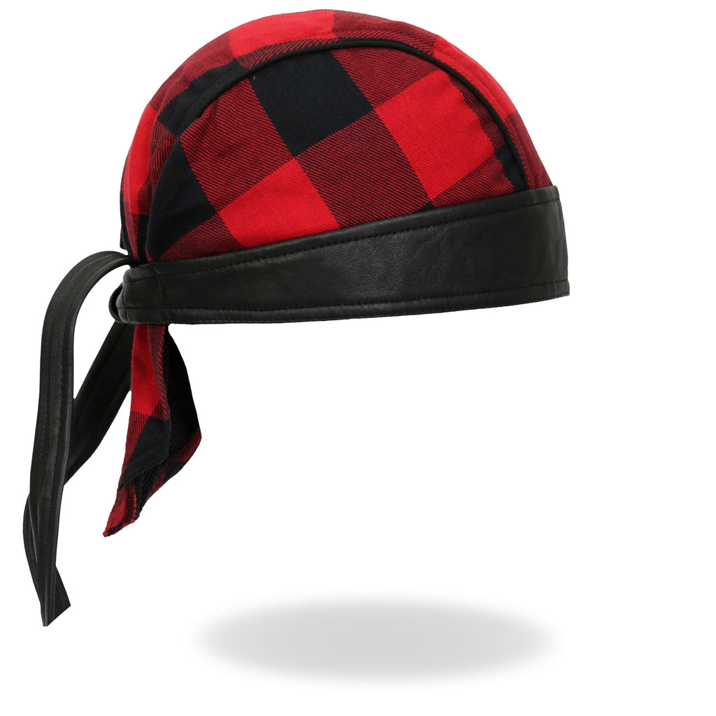 Whether you're hitting the road for a joyride on your motorcycle, getting together with your club, or just need some UV protection and sweat control, Hot Leathers premium doo rag head wraps are just what you need! Put on your new headwrap bandana while you run errands or handle some yard work. Represent your unique style with our moisture wicking, mesh lined head wraps, showcasing bright, long lasting designs sure to turn heads! This head wrap features our original red and black flannel design with just a touch of leather to give it some edge.
