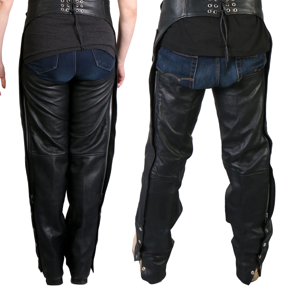 Hot Leathers CHM1005 Best Quality Fully Lined Motorcycle Unisex Black Leather Biker Chaps