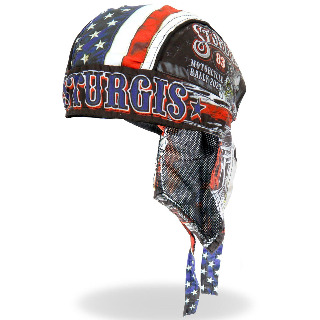Show your pride while at the 2023 Sturgis Rally, stay UV protected and keep your sweat under control with this Hot Leathers premium doo rag head wrap! Showcasing a bright, long lasting design sure to turn heads! This head wrap features our original red, white and blue American flag stars and stripes design.