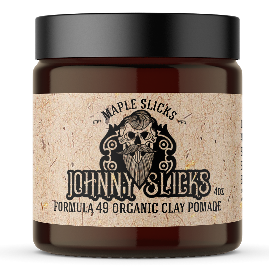 Give your hair that A+, all-day style with our organic Formula 49 clay pomade — now with a maple scent! Your hair and scalp with thank you for using 100% organic ingredients. Maple Slicks fragrance is a delightful blend of Maple Syrup and Pecan. Hand Crafted by a former US Marine in the U.S.A. 2oz, 4oz.