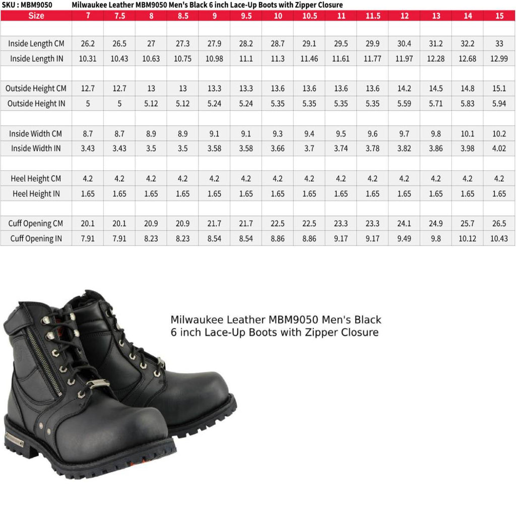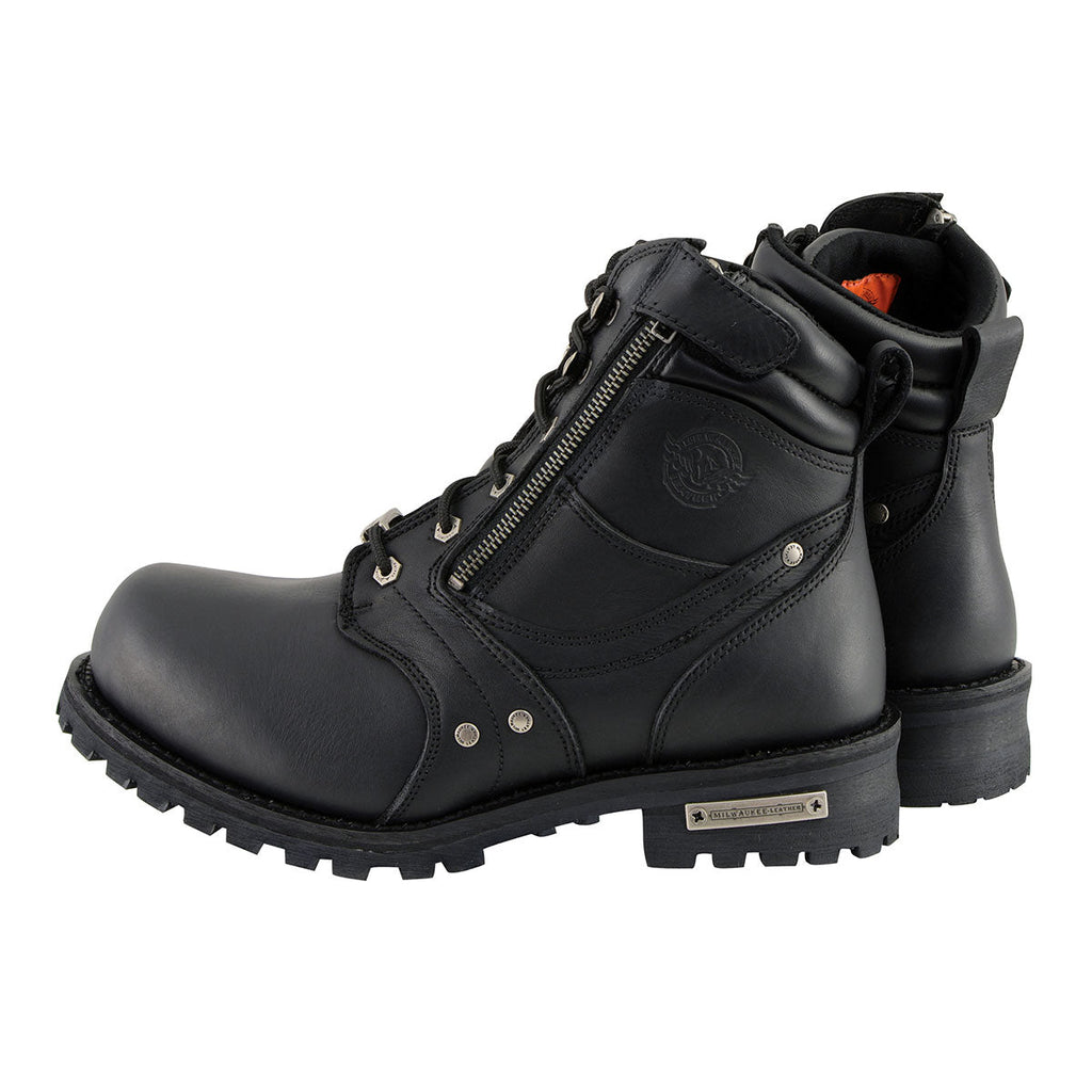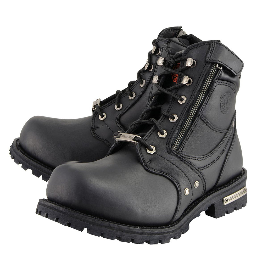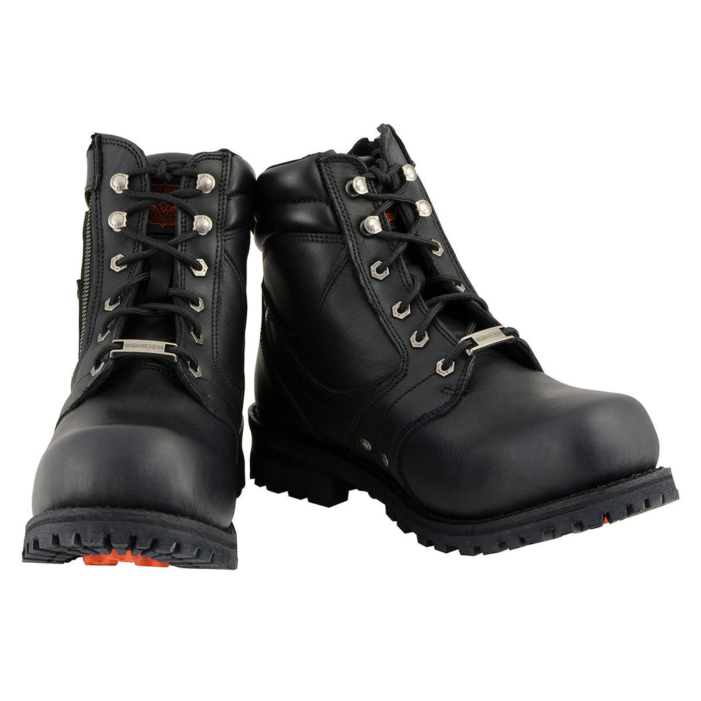 Milwaukee Leather Men's Black Leather 6-inch Lace-Up Motorcycle Biker Rider Boots w/ Zipper Closure MBM9050