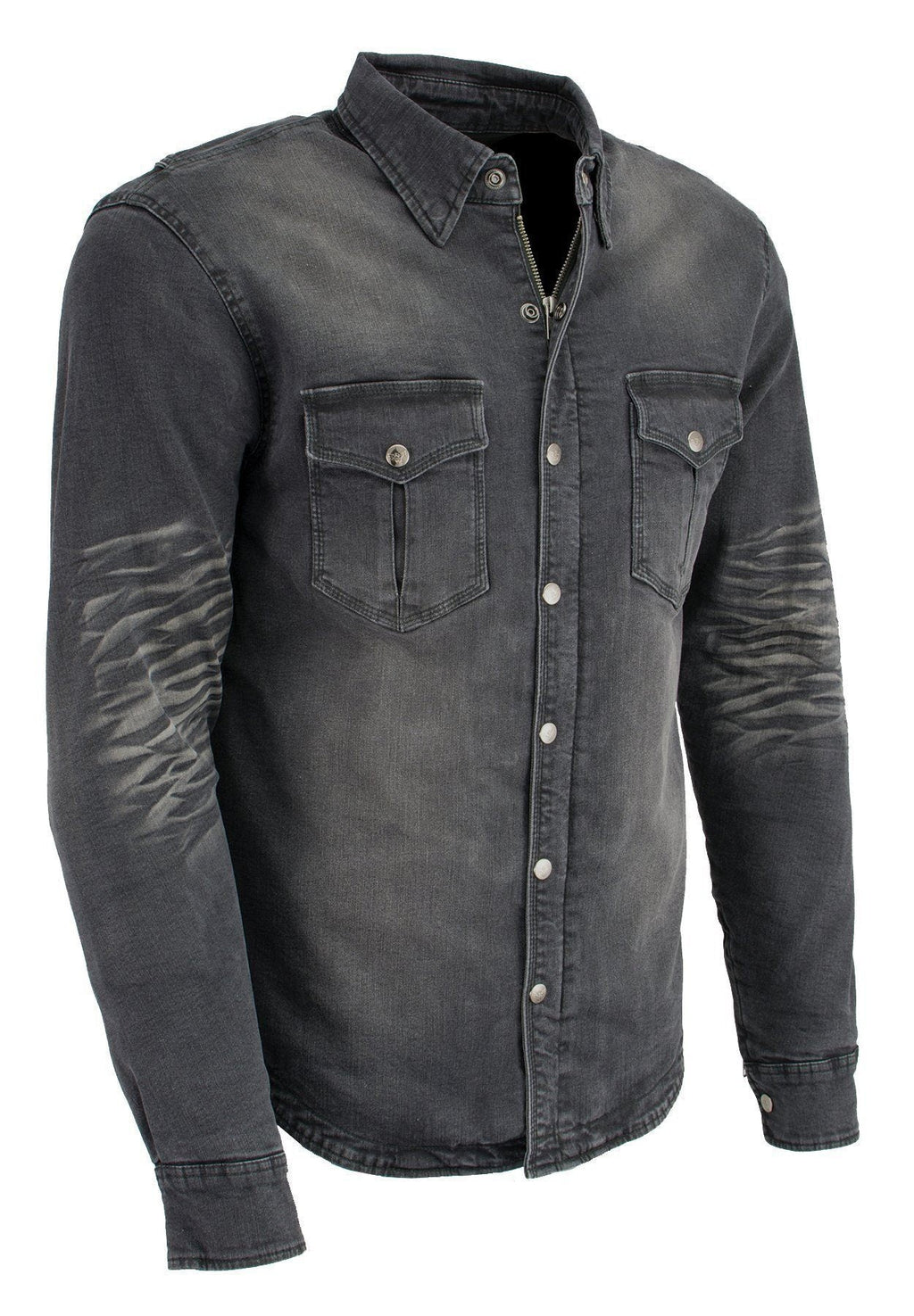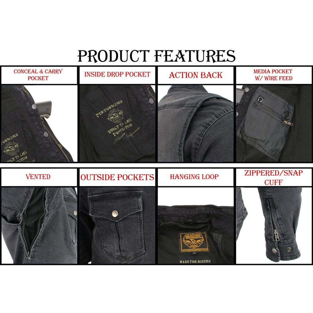 Milwaukee Leather MPM1620 Men's Black Flannel Biker Shirt w/ CE Approved Armor - Reinforced w/ Aramid Fibers