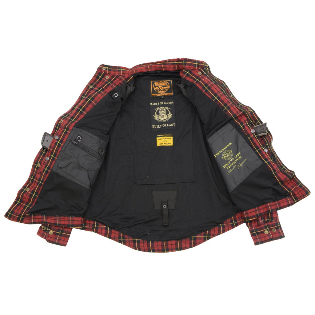 Milwaukee Leather MPM1632 Men's Plaid Flannel Biker Shirt with CE Approved Armor - Reinforced w/ Aramid Fiber