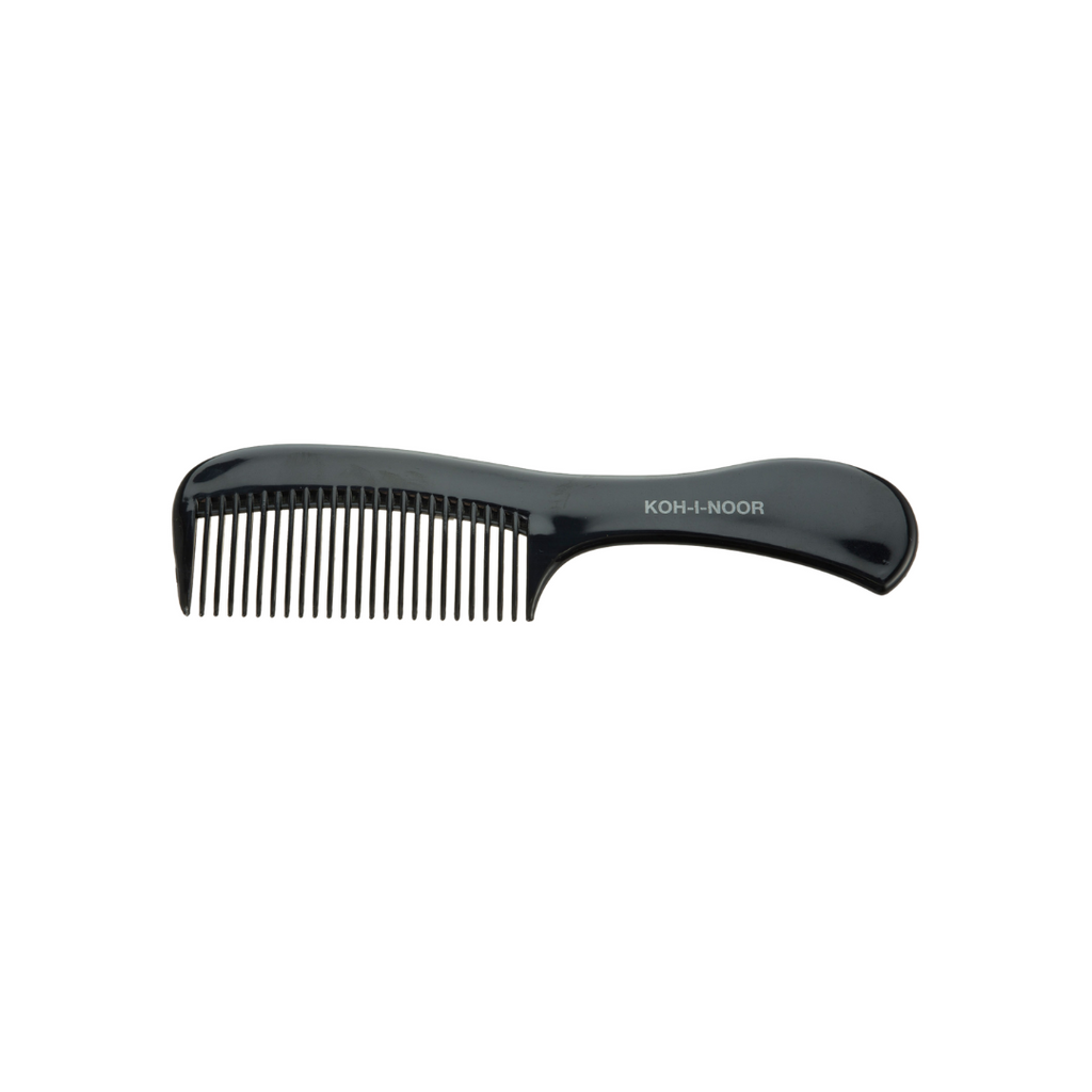 The Professional Combs with wide spread teeth and handle is perfect to untangle knots without causing pull-and-snag drama. Ideal for curly or easily tangled hair, they also serve as a multitasking marvel, evenly distributing products and potentially reducing breakage and split ends. Comes in black, white, and sand. This will be your go-to comb.