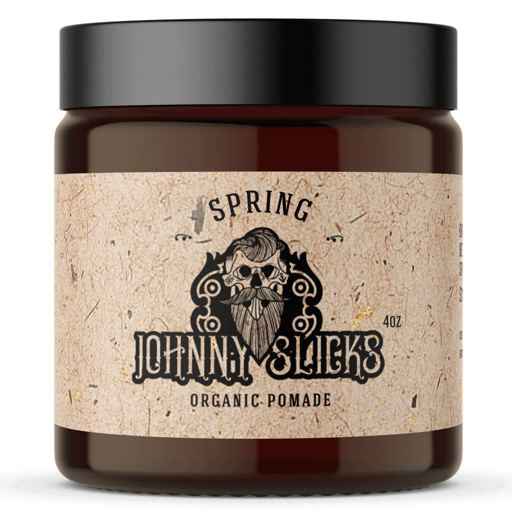 Spring Oil Based Hair Pomade. Spring scent with citrusy notes of Cut Grass and Lavender. Hand Crafted by a former US Marine in the U.S.A. 2oz, 4oz.