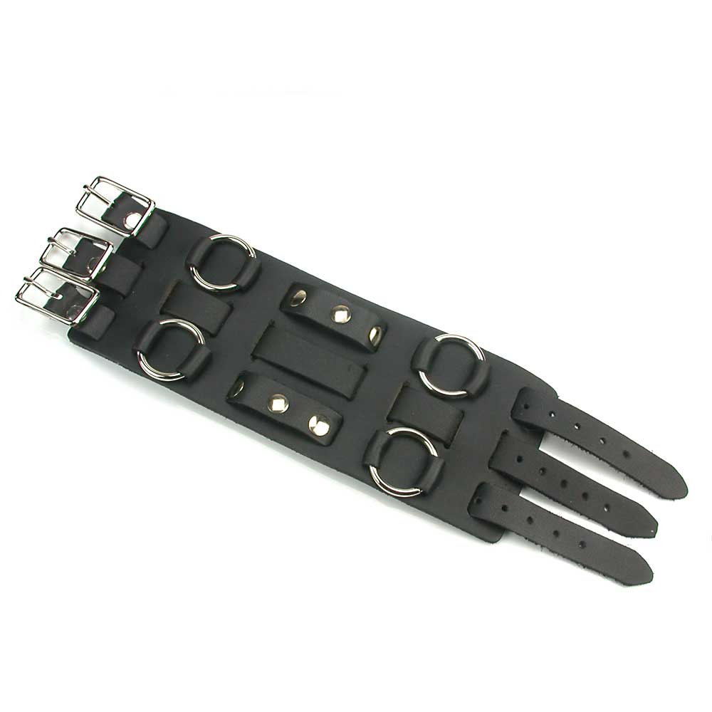 Put a bold, edgy twist on your look with this Studded Wrist Cuff Watch Band featuring four rings and studs. This adjustable band effortlessly fits most wrists, doubling as a stylish watchband. Crafted from genuine black leather, this eye-catching design is proudly made in the USA.