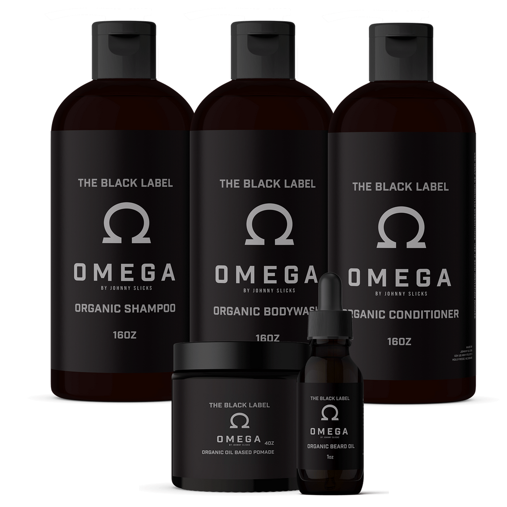 - 4oz Organic Oil Based Pomade - The Omega Oil Based Pomade uses our signature oil blend, but with The Black Label scent profile. This pomade is a luxurious, rugged, and dignified product with the fragrance to match.